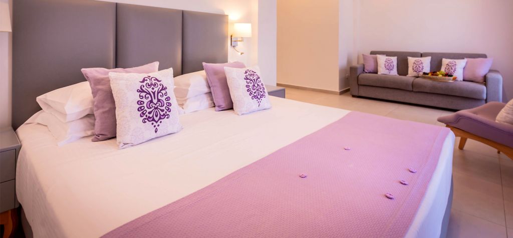 They feature one bedroom with double or two twin beds (up on request), sitting area, bathroom with shower, private balcony with their own Jacuzzi where you can enjoy special moments of relaxation. Accommodates up to 3 guests. Size approx 25 -30 sq.m